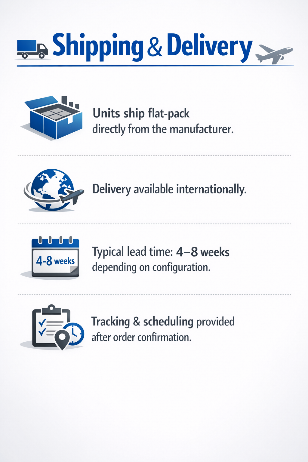 - 20ft or 40ft available
