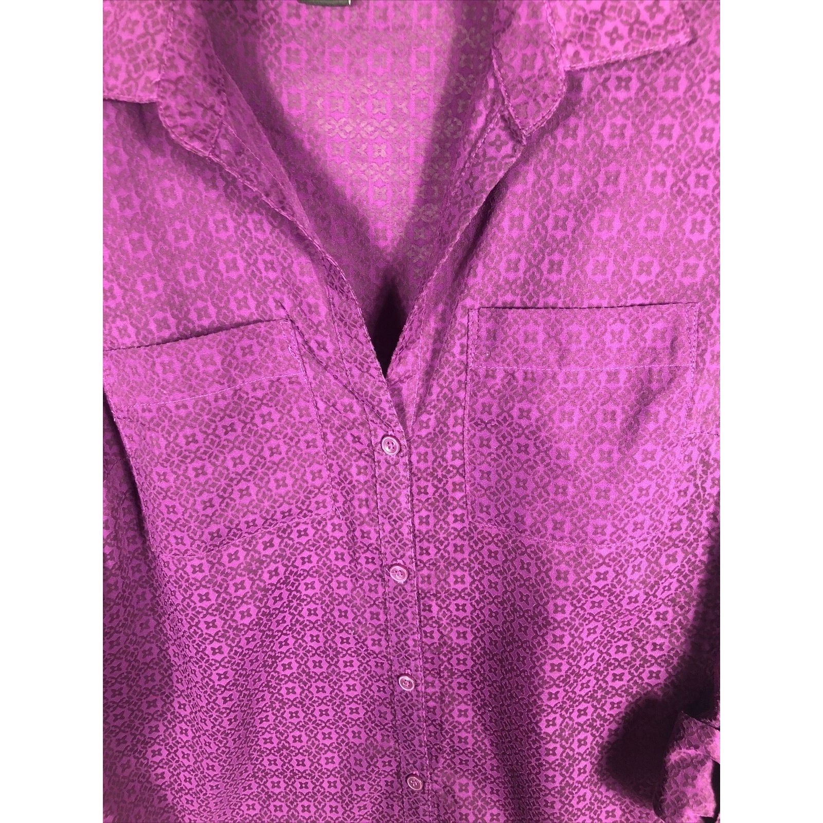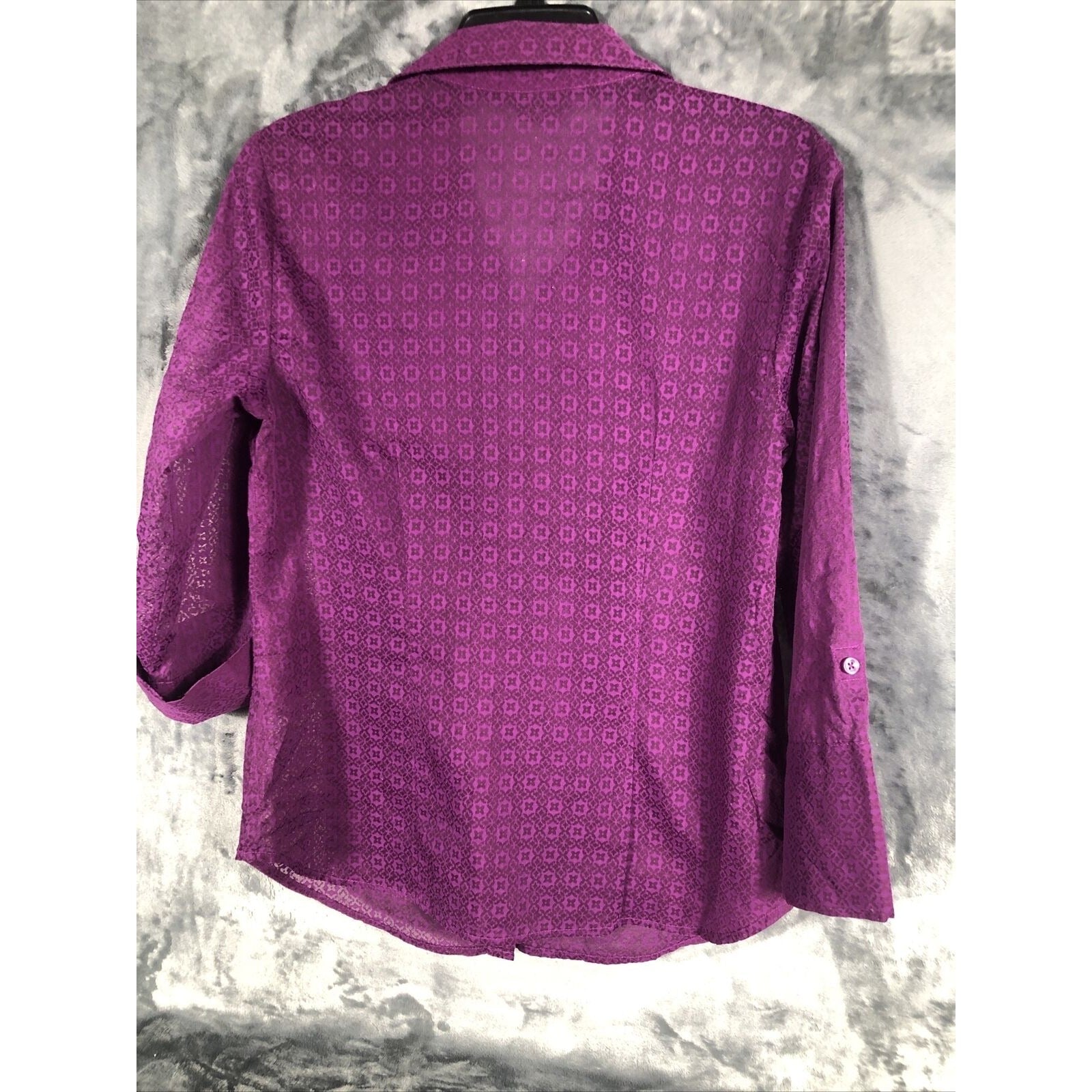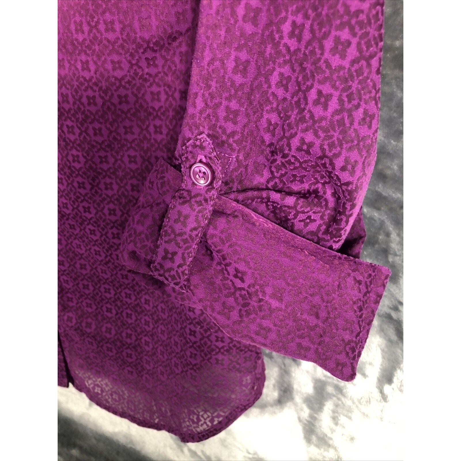 The blouse is adorned with button accents and has pockets for added convenience. The sheer fabric type adds a touch of elegance to the blouse. This regular fit blouse is available in size 6 and is a basic style that can be paired with any outfit. Don't miss out on this versatile addition to your wardrobe.