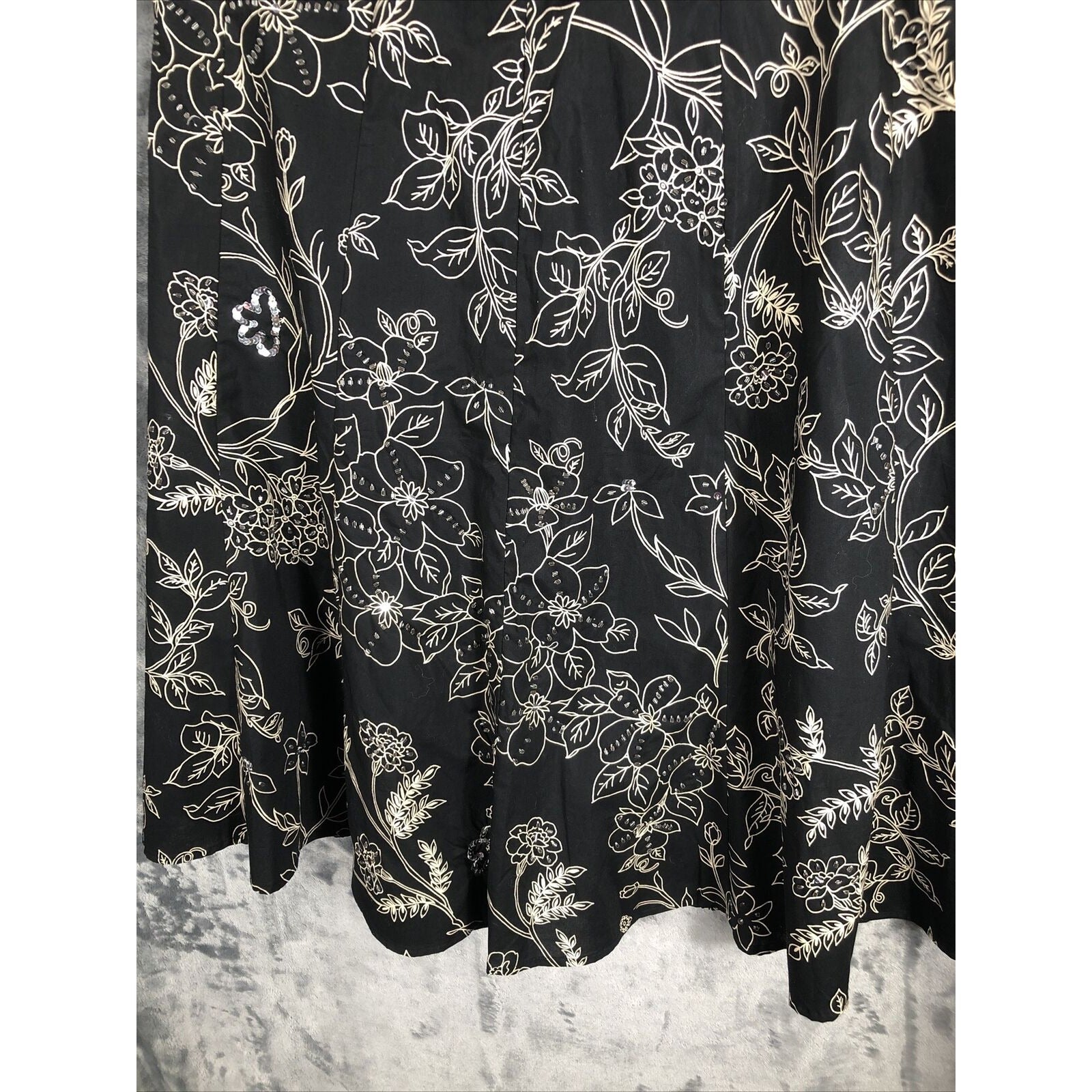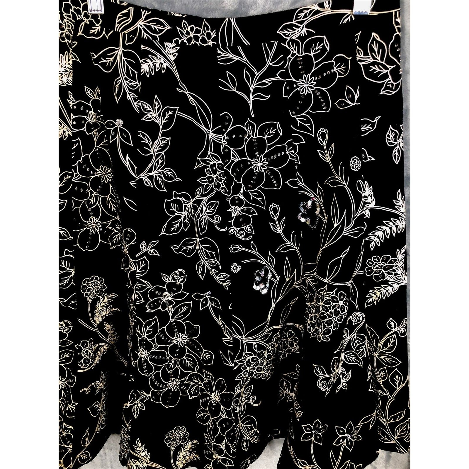 Ann Taylor Loft Skirt 4 Women’s Black Flare Floral Sequined Black Tan