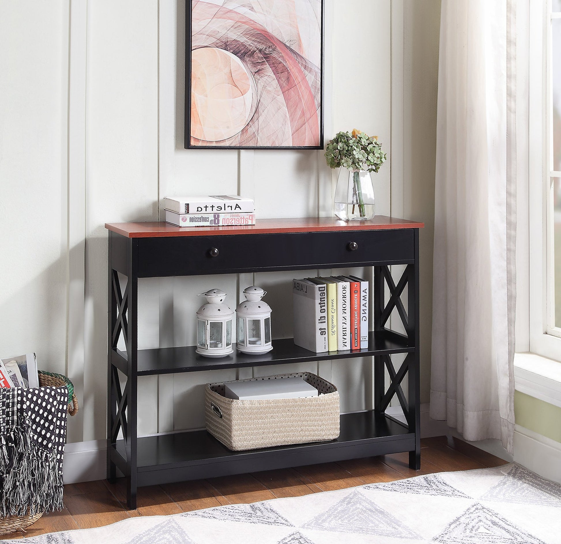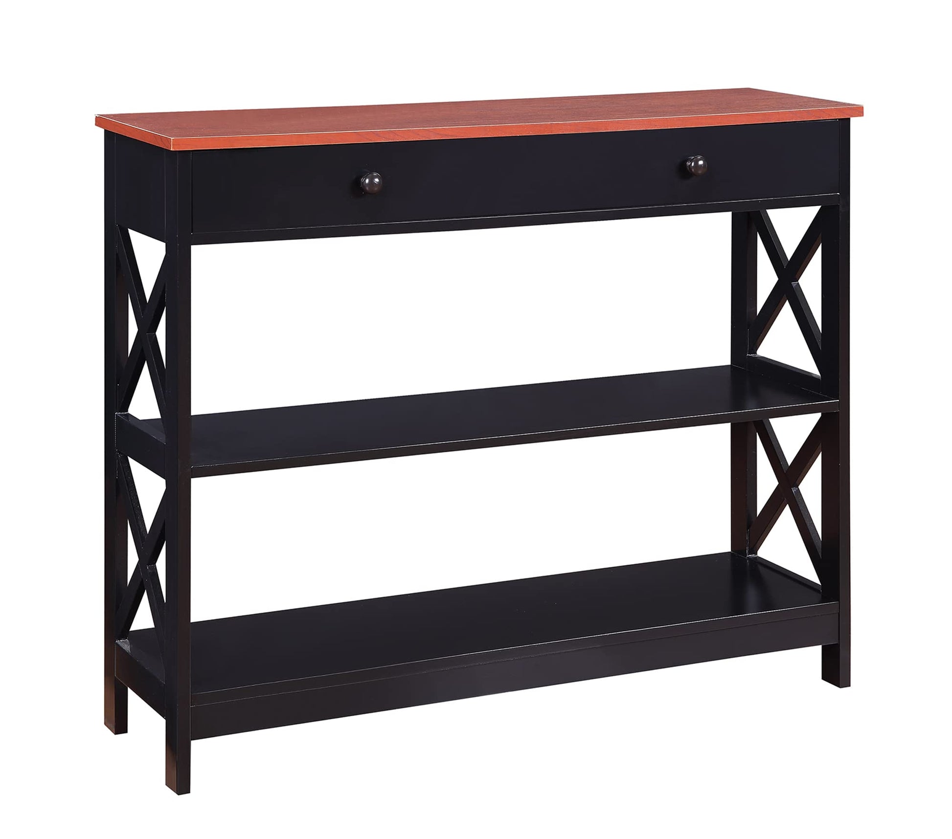 Convenience Concepts Oxford 1 Drawer Console Table with Shelves, Cherry/Black