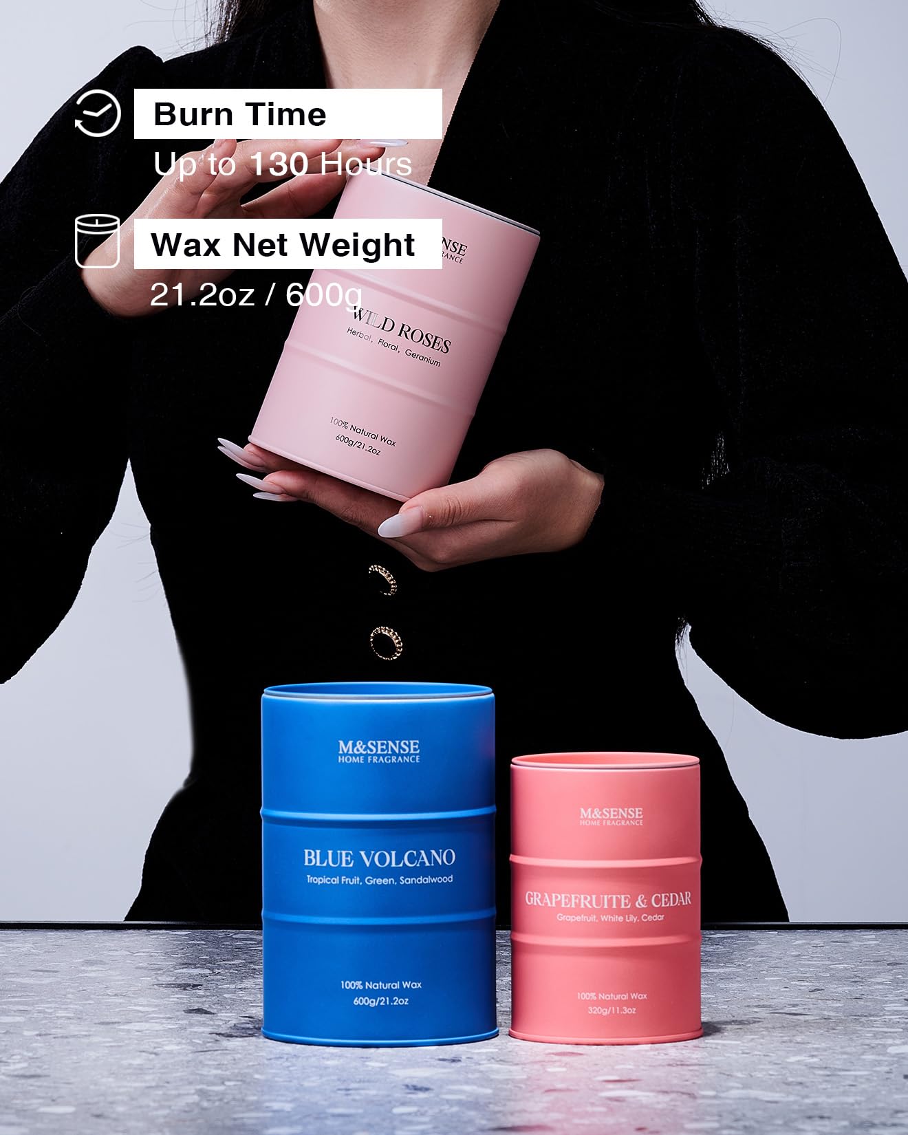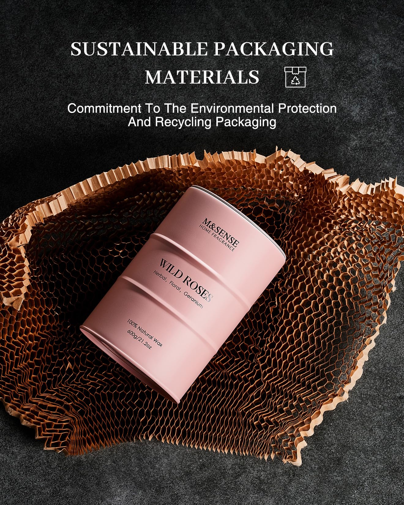 - 💚 Sustainable Material - M&SENSE candles are all crafted with the finest and most natural ingredients. Using high-end vegetable wax and unbleached cotton wicks in a reusable and recyclable tin. Packaged in recycled honeycomb paper and cardboard box for a more sustainable future.