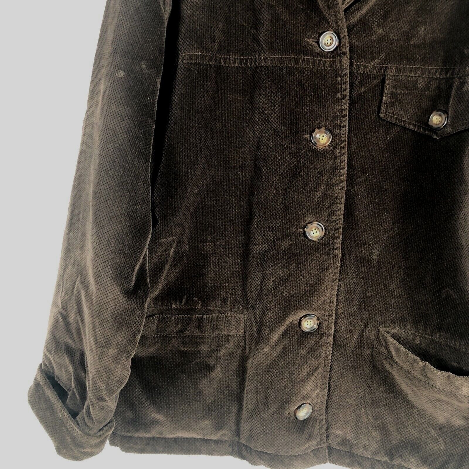 Saint Johns Bay Authentic Woman's Brown Corduroy Button Up Coat Adult Medium